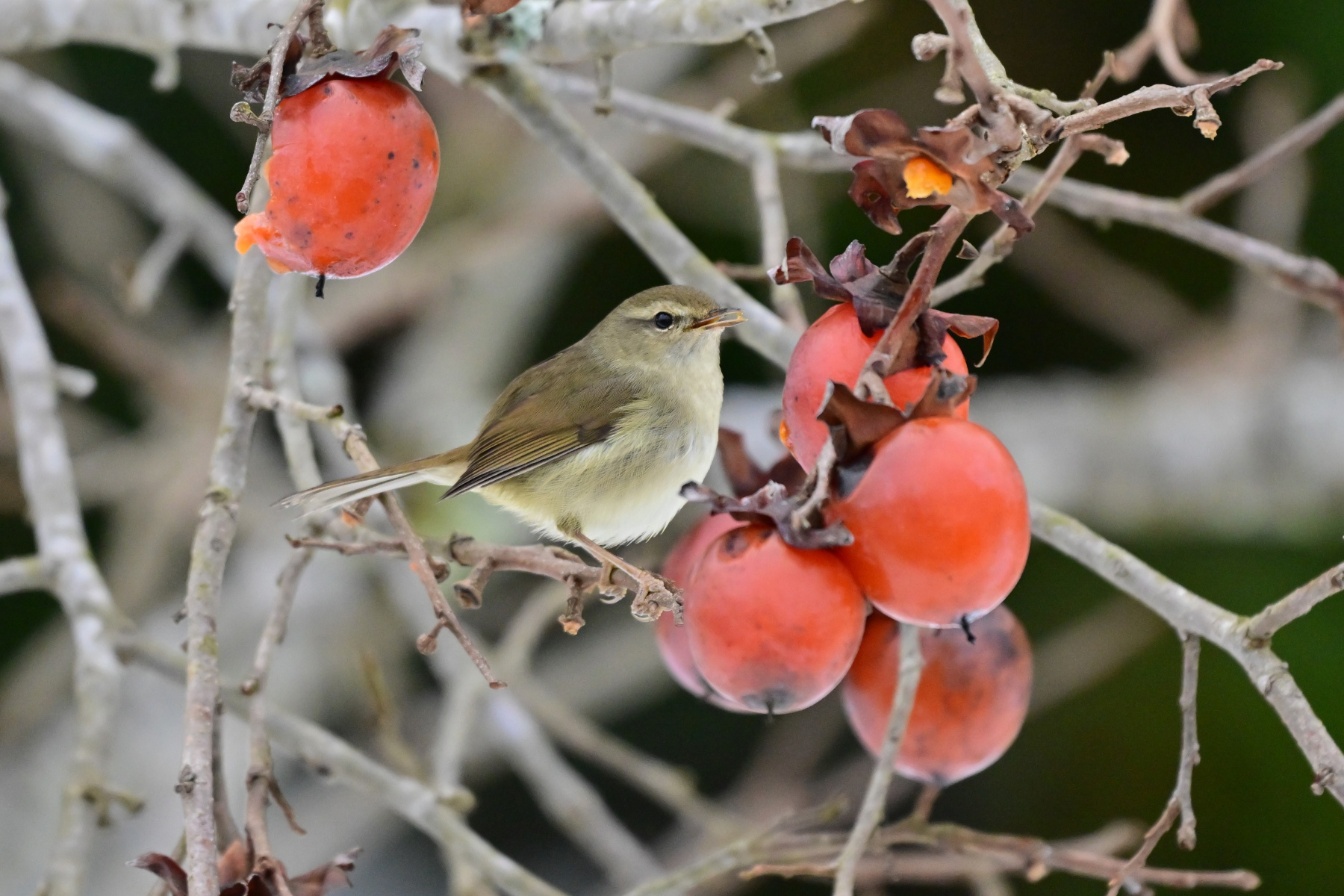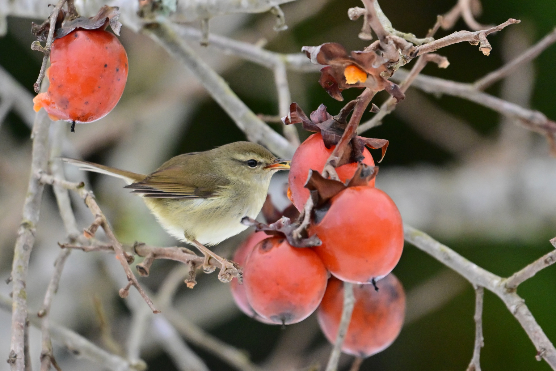 メジロも残り柿に来ました。