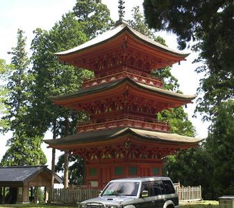2004年09月11日 仕事までに少し時間があったので、妙見さんに行きました。僕のパジェロと名草神社の三重の塔です。ここまで車で入ってもよかった?